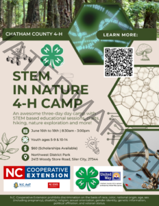 Campers will need to bring a bag lunch each day. Enrollment space is limited. The cost is $160 per person. A limited number of need-based scholarships are available – please inquire with the Cooperative Extension/4-H office for more information on how to apply. They do not take electronic payments – cash or check only. Please note: No arrivals will be accepted before 8:20 a.m. Campers must be dropped off and picked up on time—a fee will be assessed for late pick-ups.