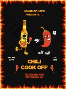 Join House of Hops for their Annual Chili Cook Off on Sat, Feb 28, 1pm-5pm. Any type of chili is eligible and will be judged on the following criteria: