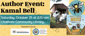 Join the Chatham Community Library for an Author Event with Kamal Bell on Sat, Oct 25, 2pm-3pm. Meet author Kamal Bell, founder of Sankofa Farms and a food justice, youth education, and sustainable agriculture advocate. He will be reading from his book, “Akeem Keeps Bees”, a children’s book inspiring young readers to explore agriculture and pollinator conservation.