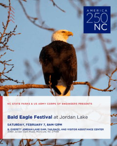 Join NC State Parks and the US Army Corps of Engineers for their 2nd Annual Bald EagleFest at Jordan Lake on Sat, Feb 7, 8am-12pm. Jordan Lake is home to at least 25 nesting pairs of bald eagles. In the winter, dozens of migratory eagles congregate below the dam- a fantastic sight to see!