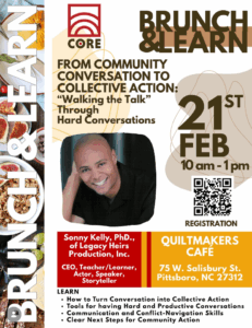 Join CORE for their first Brunch and Learn of the year at Quiltmaker Cafe on Sat, Feb 21, 10am-1pm, featuring guest speaker Dr. Sonny Kelly of Legacy Heirs Production, Inc. During this three-hour session, you’ll learn: