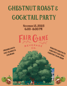 Get ready for The Plant’s third annual Chestnut Carnival with a Chestnut Roast and Cocktail Party on Sat, Nov 15, 6pm-9pm. Enjoy chestnut cocktails and chestnut rum cream from Fair Game Beverage Company, along with fresh roasted locally grown chestnuts! Bring your friends for a cozy fall evening featuring fireside chats, live music, and holiday vibes.