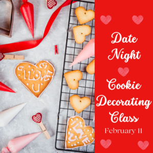 Join Carolina Cravings for Date Night Cookie Decorating on Wed, Feb 11, 6pm-8pm at The Sycamore at Chatham Mills. Learn to decorate perfectly baked sugar cookies for Valentine’s Day! You will decorate six cookie designs with Carolina Cravings’ cookie decorator, Iliana, as she provides step-by-step instructions. Basic decorating techniques will be taught, such as royal icing consistencies, outlining, flooding, wet-on-wet, and other fun techniques. The class is two hours long and includes a decorating cookie kit with six cookies, three colors, and two packs of sprinkles – plus, you get to take your creations home to enjoy! This class is for adults only, with a special Valentine’s Drink Menu by The Sycamore: