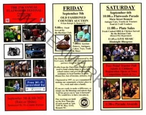 The 27th Annual Flatwoods Festival on Fri, Sep 5, 5pm-8pm and Sat, Sep 6, 10am-4pm is hosted by the Tri-County Ruritan Club and celebrates a fun family experience. Festivities include an antique car, truck, tractor, a horse parade, food vendors, craft vendors, inflatable jump houses, and live music. For more information, contact Debby Hussey at [email protected] or 919.548.5129. More events in Bennett.