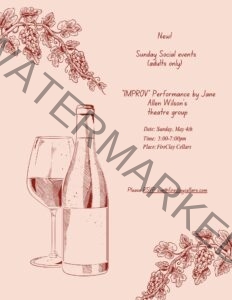 Join FireClay Cellars for a Social Sunday Improv Performance by Jane Allen Wilson’s theatre group on Sun, May 4, 5pm-7pm. Ages 21+ are welcome to attend. Please RSVP to [email protected] and reserve your spot.