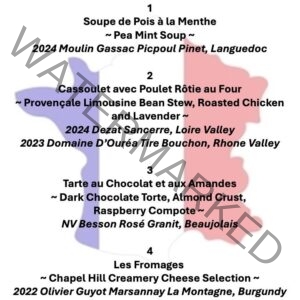 Explore authentic French food and wine at Vino!! Wine Shop’s L’Assiette Provençale French Wine Dinner on Sun, Nov 2, 6pm-8pm. They are ecstatic to announce that Chef Baptist Knaven, former owner and Chef at Provence in Carrboro, has agreed to cook their upcoming wine dinner. He’s teaming up with Tyler Morgan of Authentique Vin to craft a truly unforgettable French experience in honor of the famous French Chef Jacques Pépin, whose 90th birthday is approaching.
