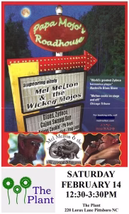 Join The Plant for a Mardi Gras Celebration and Live Music with Mel Melton & The Wicked Mojos on Sat, Feb 14, 12:30pm-3:30pm. Mel Melton & The Wicked Mojos, a smokin’ Zydeco/Cajun flavored blues band out of North Carolina. In addition to Melton, the Wicked Mojos are Max Drake, T.A. James, and Kelly Pace. Learn more about them here.