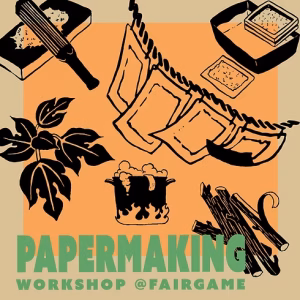 Join Angaea Cuna in the Fair Game Beverage Company wheelhouse for a Papermaking Workshop. Connect with the earth through the ancient and meditative art of papermaking. In this hands-on workshop, teaching artist Angaea Cuna will guide you through the magical transformation of natural fibers—like Kozo, Wauke, Abaca, and Hemp—into beautiful handmade paper.