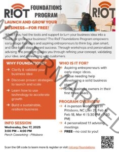 Do you have an excellent product or business idea, but aren’t sure where to start? Join Perch Coworking for this R!OT Foundations Program, a four-session program hosted on select Wednesdays, 5:30pm-7:30pm. This program engages small business owners, startup founders, and prospective entrepreneurs to learn the foundations of starting their business. Through workshops and personalized advising, the program guides you through refining your concept, validating your idea, and connecting with customers.