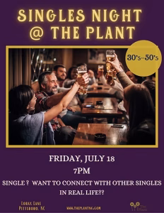 Join The Plant for another night of socializing with other singles at their Singles Night (Mid 30’s-50’s) on Fri, Jul 18, 7pm-9pm. This will not be the typical speed dating event—the goal is to get a group of singles to socialize and meet other singles. They will have a variety of stations with activities and conversation cards, and if you want to hang out, you can do that, too! The food and beverage establishments at The Plant will be open for drinks and dinner. It’s going to be a great time! The suggested age is mid 30’s-50’s for this event. However, all are welcome! Participants must be 21 years of age or older.