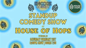 Join House of Hops for a Stand Up Comedy Show on Sat, Feb 21, 8pm-9:30pm. Looking for something to do? Love great comedy and great beer? Come see the best live stand-up comedy show in Pittsboro! At this show, you will see a lineup of the best comedians from the Triangle, North Carolina, and all around the Eastern US! Every show features a whole new lineup of comedians! Past Encore Comedy shows have featured comedians who have performed at famous venues such as the Comedy Cellar, the Laugh Factory, and Madison Square Garden; writers from shows such as SNL and Conan; Kill Tony Golden Ticket winners; writers for the Onion; and comedians with Don’t Tell and Drybar comedy specials!