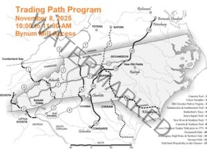 Join Friends of the Lower Haw River State Natural Area and Brian Bockhahn, Regional Education Specialist from NC State Parks, for a Trading Path Program at Bynum Mills Access on Sat, Nov 8, 10am-11:30am. Learn about historical trading paths and Native American culture. Introductory mapping activities include the past and current Tribes of North Carolina and the routes of the Trading Paths. Afterwards, you’ll hike some of the roads and paths around Bynum Mill to read the landscape. Closed-toe shoes required. This program is free and open to the general public and educators. All ages are welcome, but parents must accompany children.