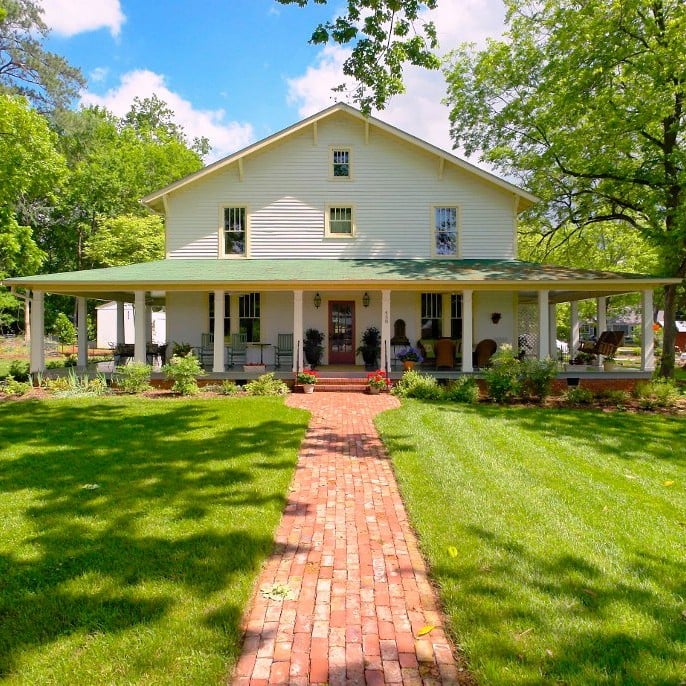 458 West Bed & Breakfast is a charming mix of old and new, this four-corner craftsman house has been lovingly restored with modern amenities while maintaining the original architectural style that makes this property unique. One of the inn’s best features is the 10-foot wide wrap-around porch overlooking the majestic pecan and magnolia trees. The bed and breakfast is within walking distance of downtown Pittsboro.