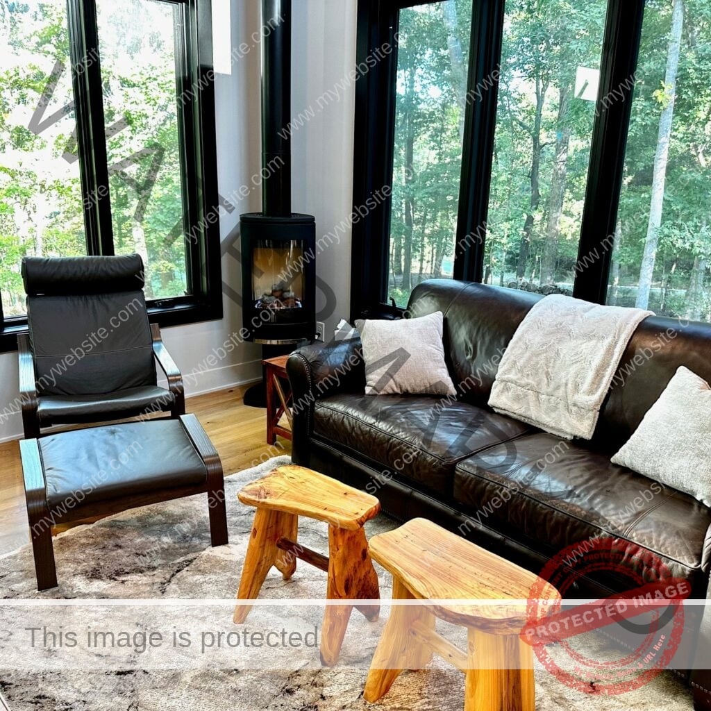 Every detail of Cedar Serenity Guest House is designed with your comfort and relaxation in mind. Cozy up to the warmth of the Jotul Norwegian cast iron gas stove on chilly evenings, or rejuvenate your senses in the oversized shower boasting three invigorating heads. Step outside onto the screened porch and breathe in the fresh air as you sip your morning coffee or unwind with a glass of wine as the sun sets on another perfect day. Then, indulge in a romantic soak in the private hot tub on the back patio, where you can bask in the tranquility of the surrounding nature.