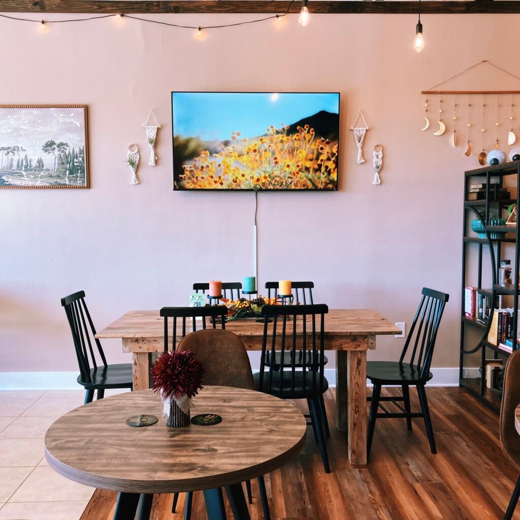 Mystic Mocha Coffee Shop in Siler City offers a cozy haven where old-world charm meets the art of specialty coffee. Step into a world of enchanting brews, freshly baked delights, and timeless comfort. An excellent space for one-on-one meetings and remote work. Sweet and savory goodies sourced from The Black Lantern Tea Room and Bakery.